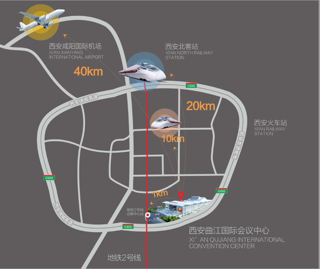 It is 20 kilometers from Xi’an North Railway Station, borders Xi’an Third Ring Road and Ring Expressway to the south, is 40 kilometers from Xi’an Xianyang Intemational Airport and 10 kilometers from Xi’an Railway Station, and near the Convention & Exhibition Center Station of Metro Line 2.